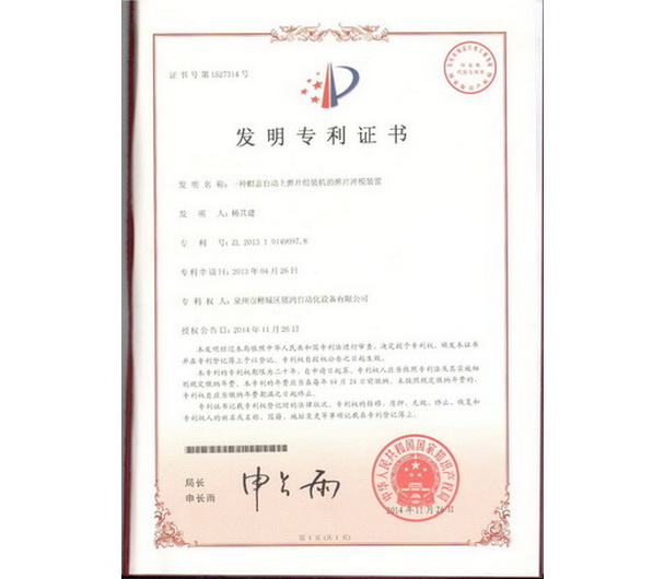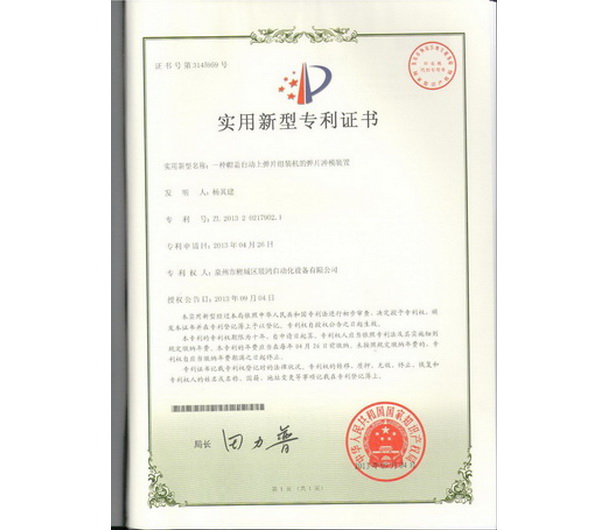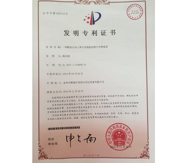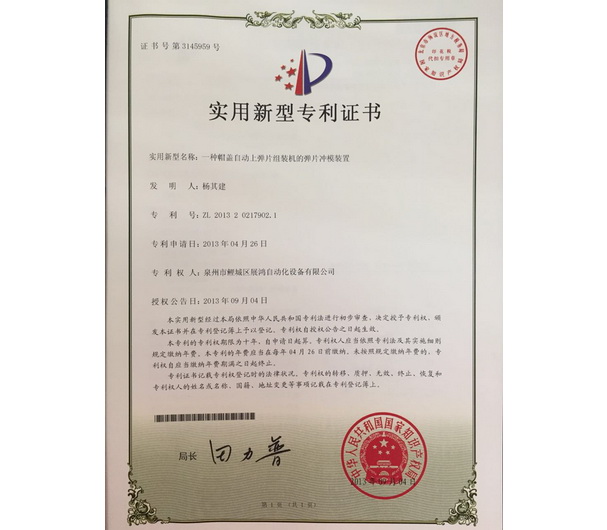 平彈片帽蓋機專利